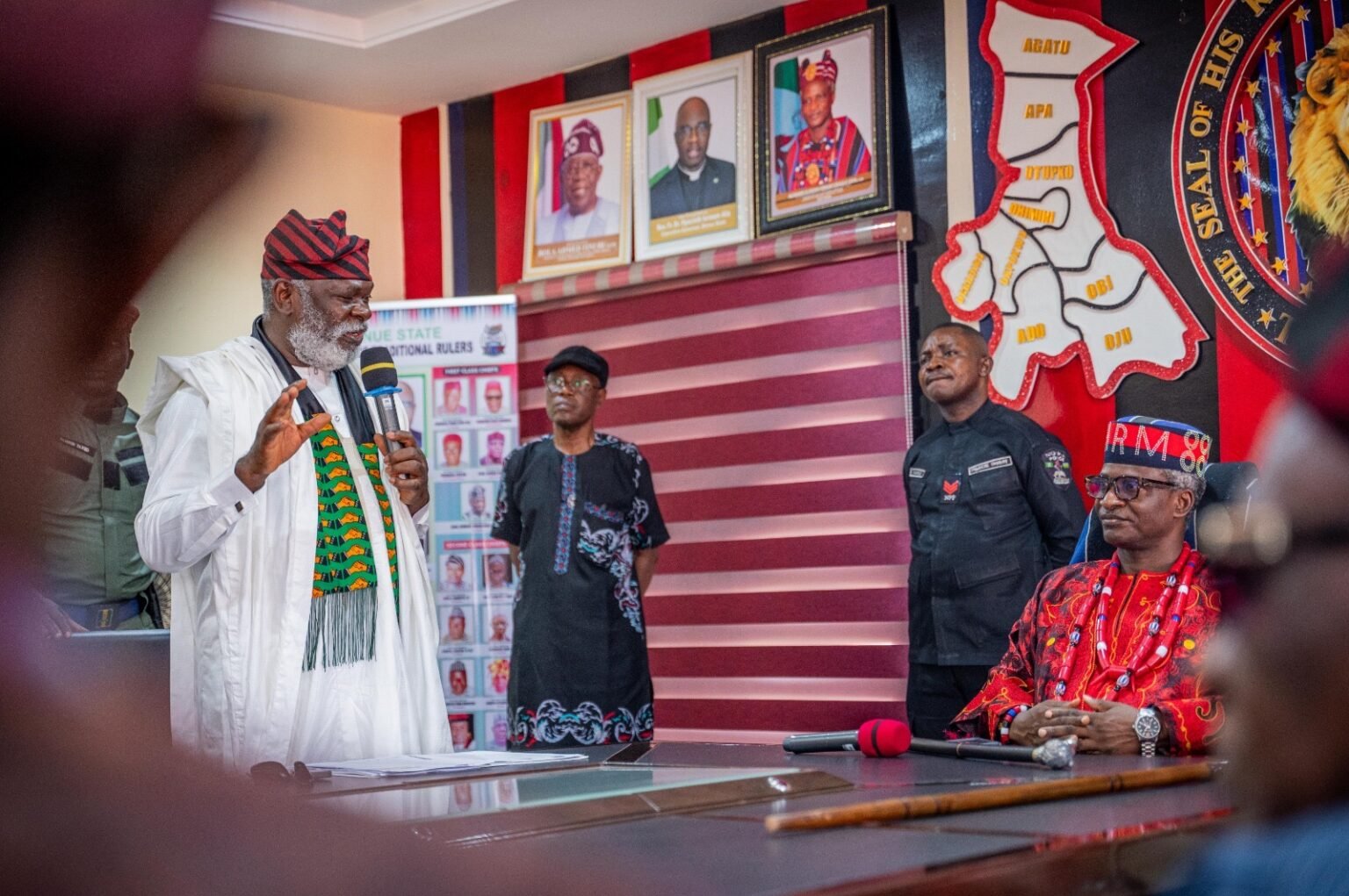 Dr Olofu was accompanied to the Palace by the First Class Chief of Apa/Agatu, Agangwu Baba Odangla, former Chairman of Otukpo Local Government Council, Chief Godwin Ukpoju, forme secretary to the government of Benue State, Professor David Salifu, Chief Donald Agida, Prince Okwute, former member of the Benue State House of Assembly, Honourable Baba Otache, Pastor (Mrs) Oowo Ameh, Dr Adakole Elijah, Honourable Rose Ameh, Honourable Dan Atayi, Honourable Abuh Echo, Honourable Ramat Yusuf, Pastor Omale, Members of Benue South Lawyers led by Barr. Ada Oche, the nine chairmen of the African Democratic Congress in Benue South Senatorial District amongst others.